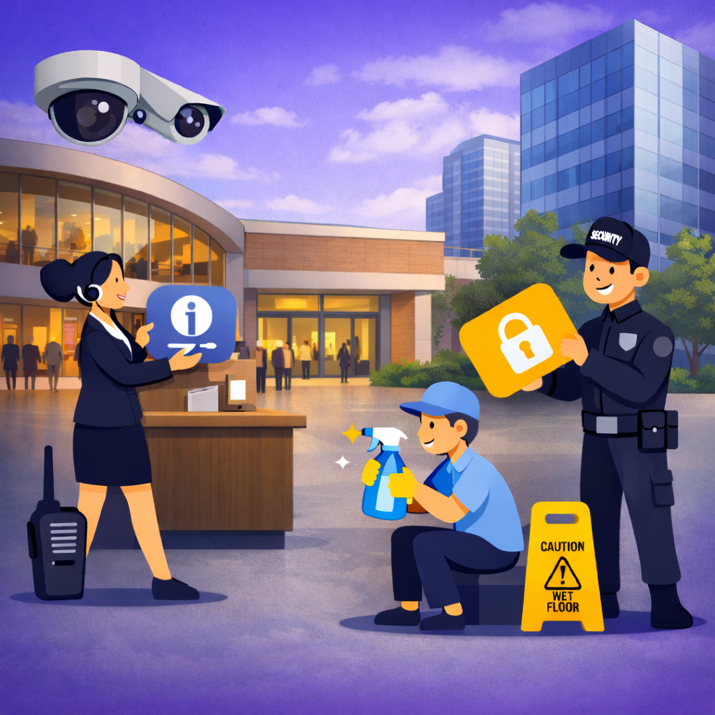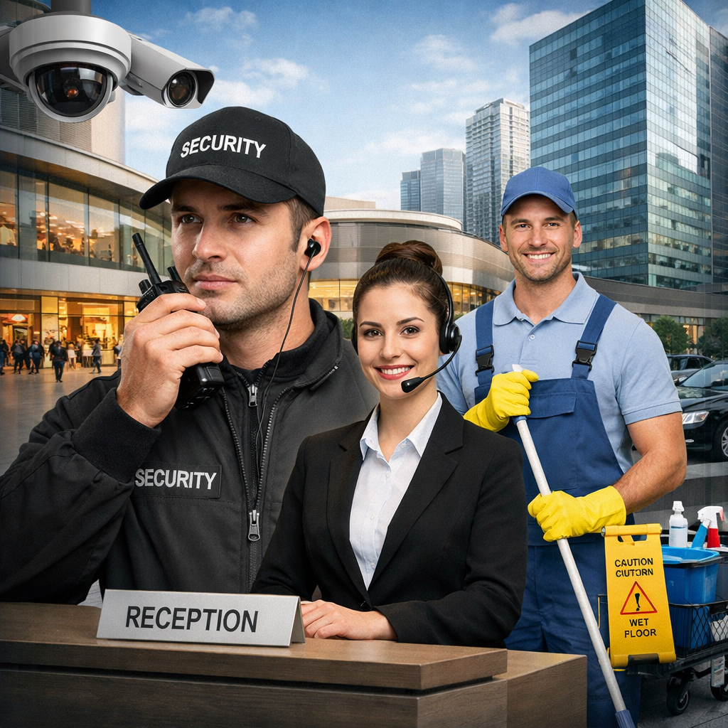 Deneyimli ve eğitimli kadromuzla güvenlik, danışma, resepsiyon ve temizlik hizmetlerini uluslararası kalite standartlarına uygun şekilde sunarız. Operasyonel planlama, disiplinli saha yönetimi ve çözüm odaklı yaklaşımımız sayesinde AVM, iş merkezi, residence ve kurumsal projelerde yüksek hizmet kalitesi sağlarız. Profesyonel süreç yönetimi ile kurumunuzun güvenlik ve operasyon ihtiyaçlarını güvenle karşılarız.